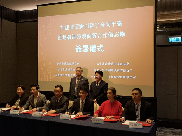 2018年的香港山東周以“選擇山東共享機遇”為主題,期望充分發揮香港獨特的開放平台優勢,通過香港面向全球宣傳推介山東,讓更多的資本、技術、人才在選擇山東中共享機遇、實現夢想。作為香港山東周重要活動之一,於12月5日舉行的魯港品牌與設計對話研討會吸引了來自香港與山東省超過50多位企業代表,進行了深入的溝通交流。會上,香港中華廠商聯合會、香港智慧城市聯盟、翹晉電子商務有限公司、山東省跨境電子商務協會、濟南名客來網絡技術有限公司和山東省數字證書認證管理有限公司簽署了六方合作備忘錄,就共建非面對面電子合同平台,推進魯港跨境商貿合作達成共識。同時,山東省數字證書認證管理有限公司與翹晉電子商務有限公司簽訂合作協議,共同推進魯港兩地電子簽名證書互認和應用的互聯互通。